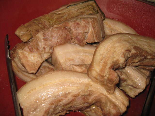 겉절이에 빠질수 없는 삼겹살 수육잔치도 기가 막혔죠