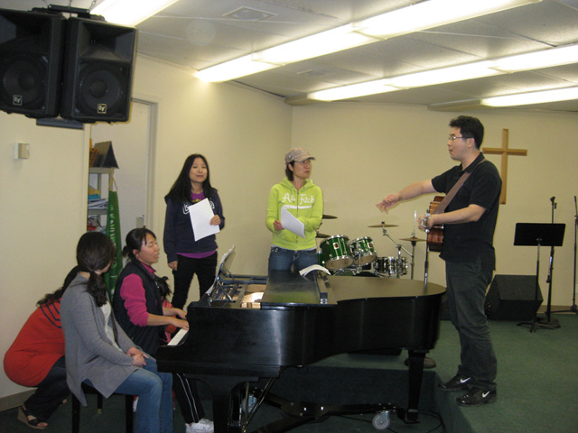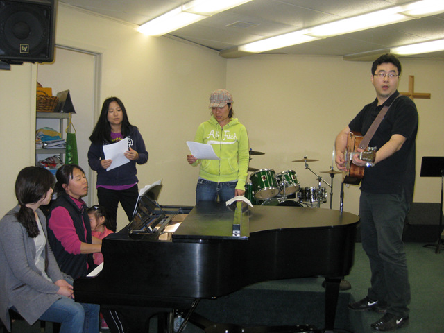 내일 있을 찬양연습을 하는 찬양팀