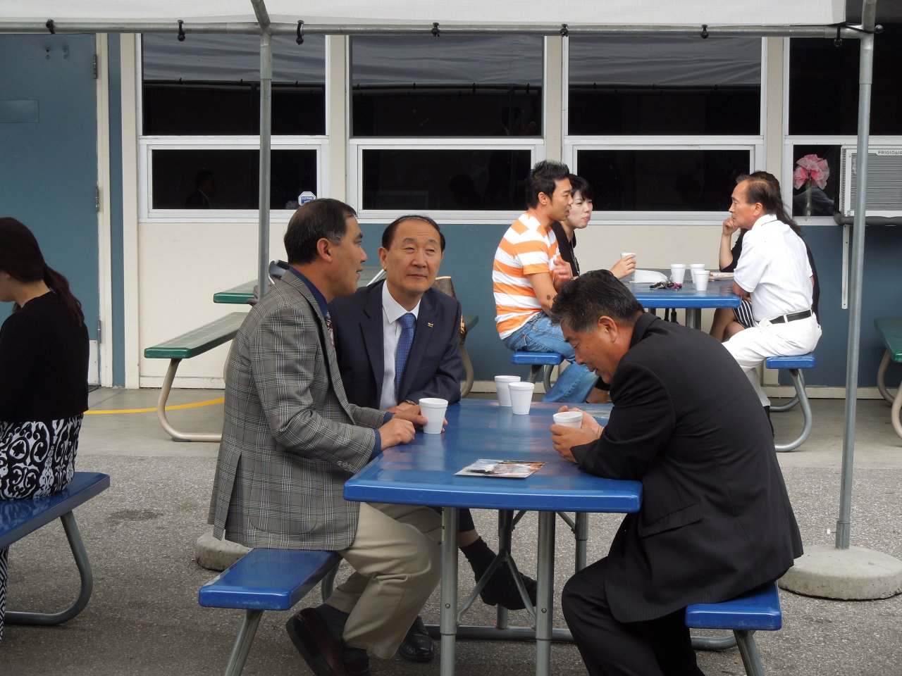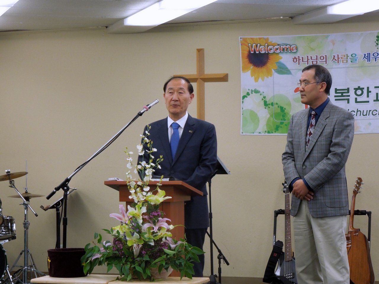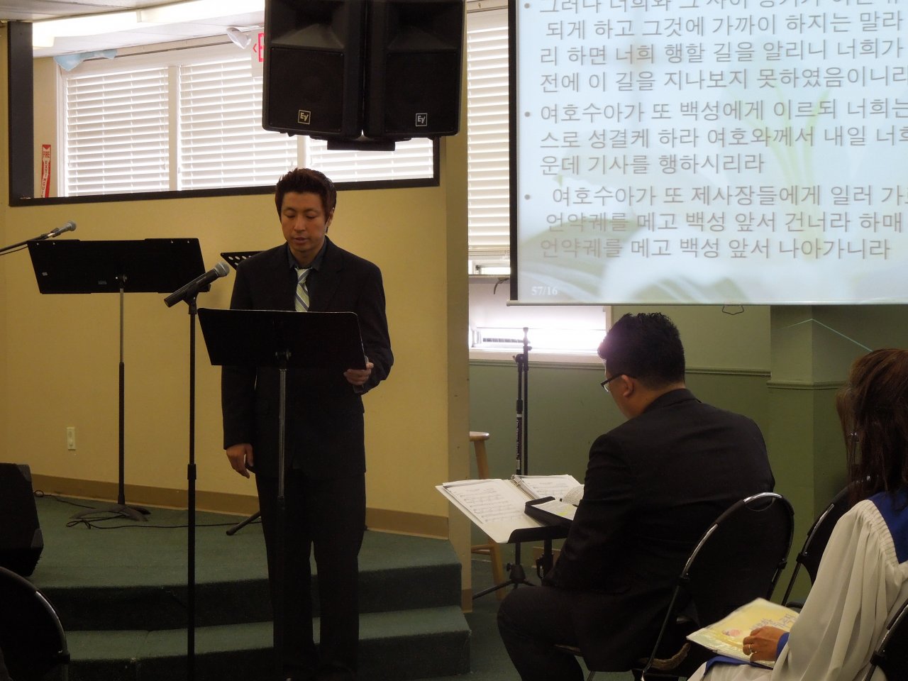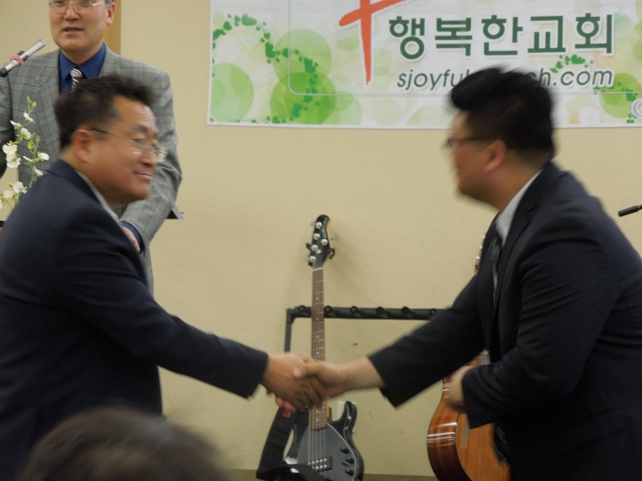 제이슨 정 선교사님과 떠나시는 선교사님을 격려하고 계신 오상준 담임목사님