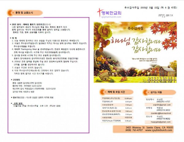 날짜: 2015.11.24 글쓴이 : 행복한교회 | 주보보기